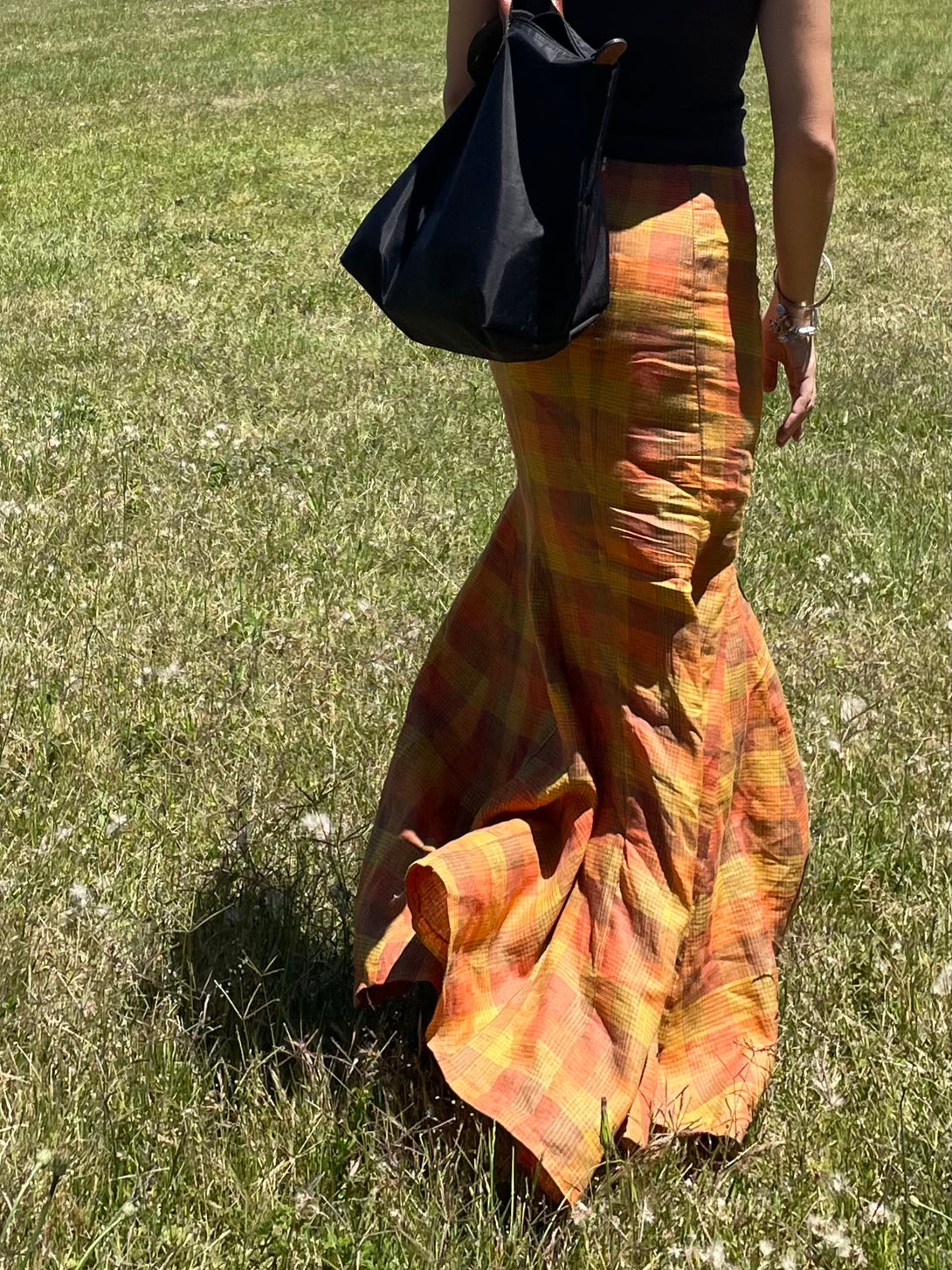 Falda en 100% Lino escocés. Con gajos y muuucho movimiento.