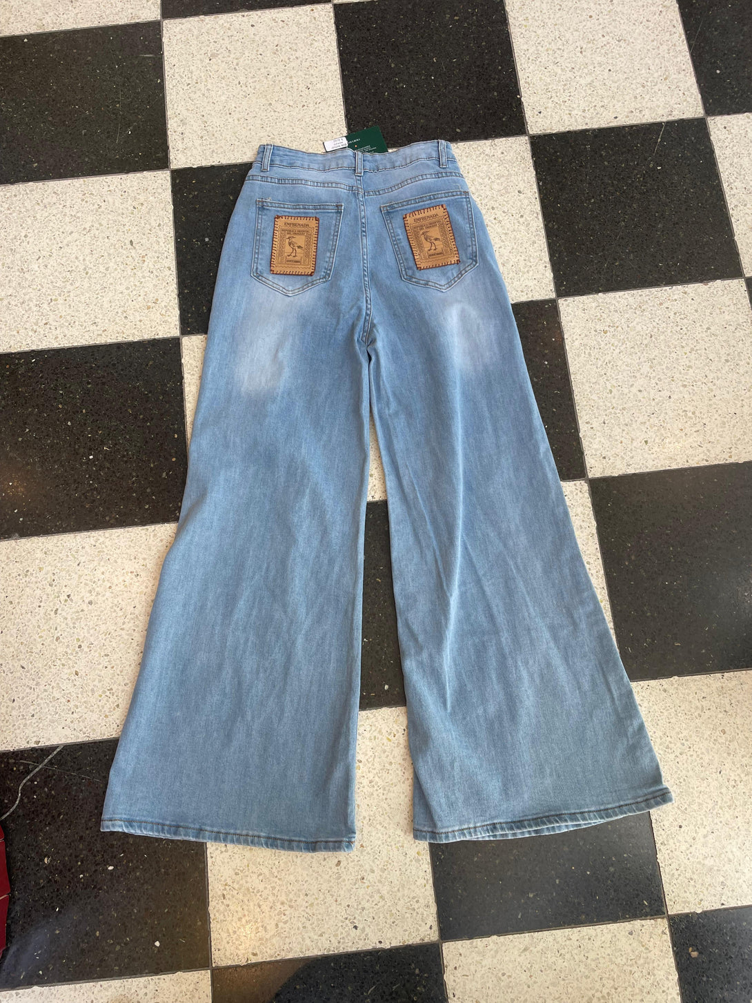 Wide leg, bordado a mano con stamps de cuero genuino.